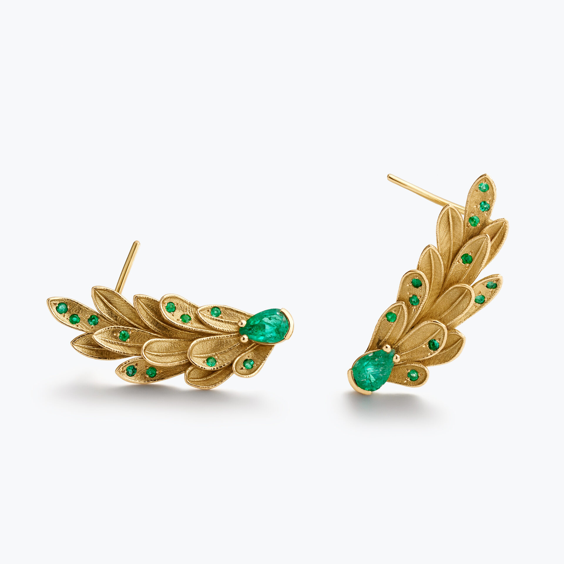 Pendientes trepadores realizados en oro amarillo de Ley con esmeraldas