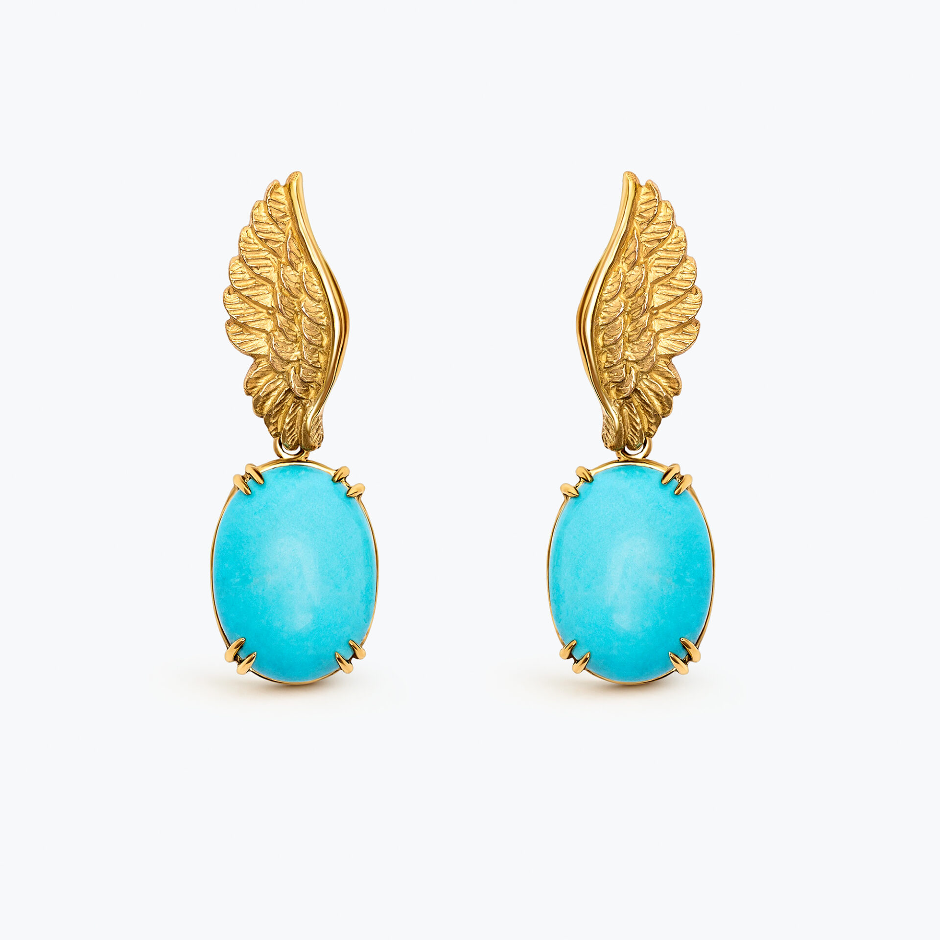 Pendientes realizados en oro amarillo de Ley con turquesa y motivo ala