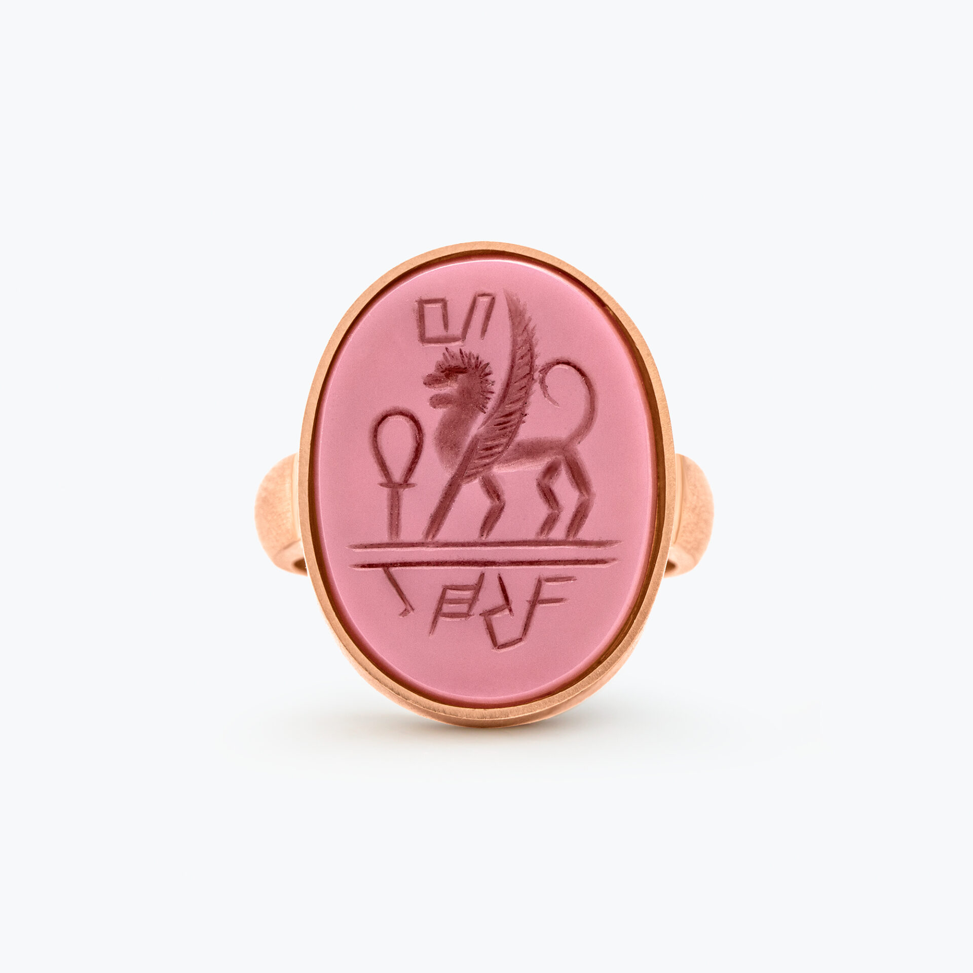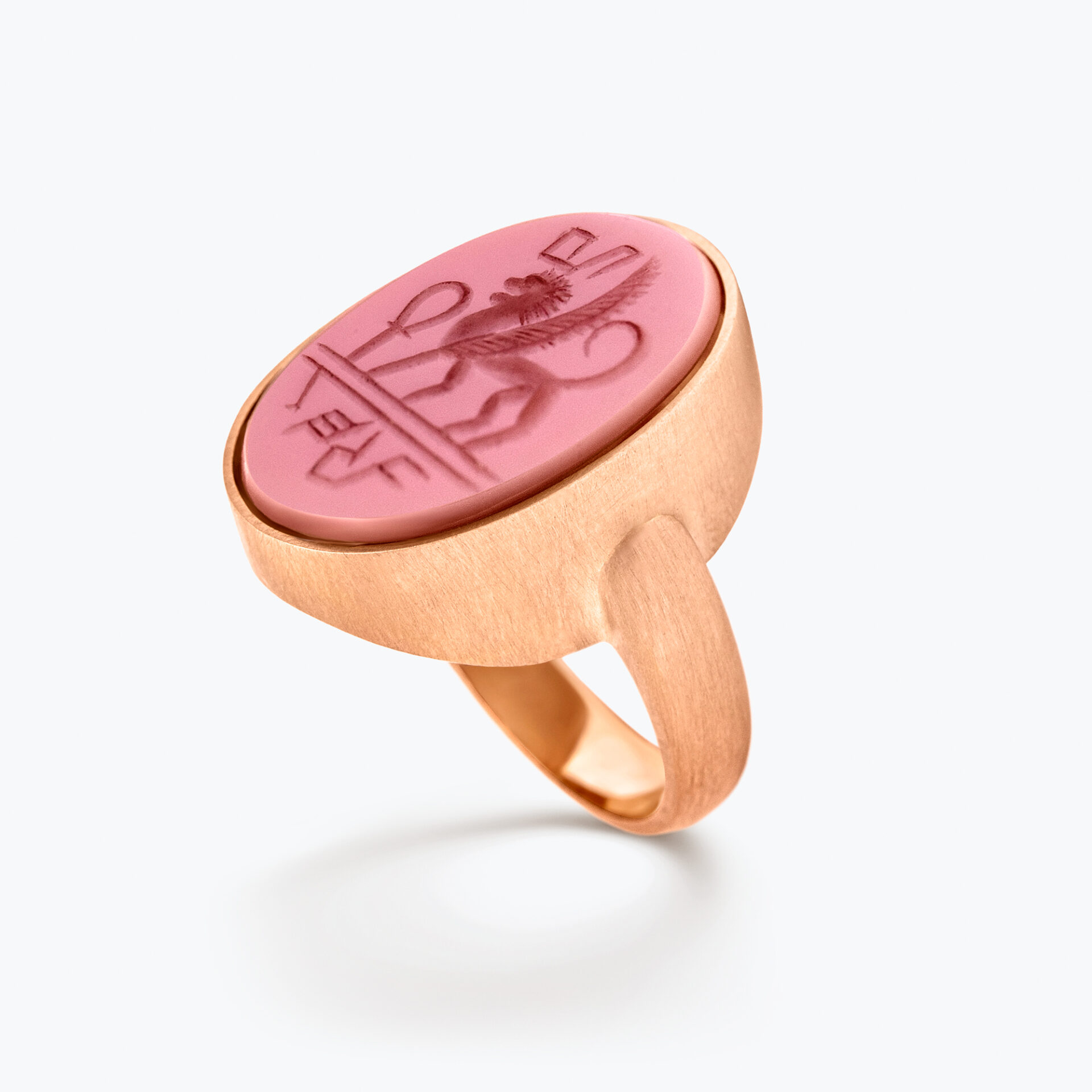 Sortija tipo sello realizada en oro rosa de Ley con carneola oval