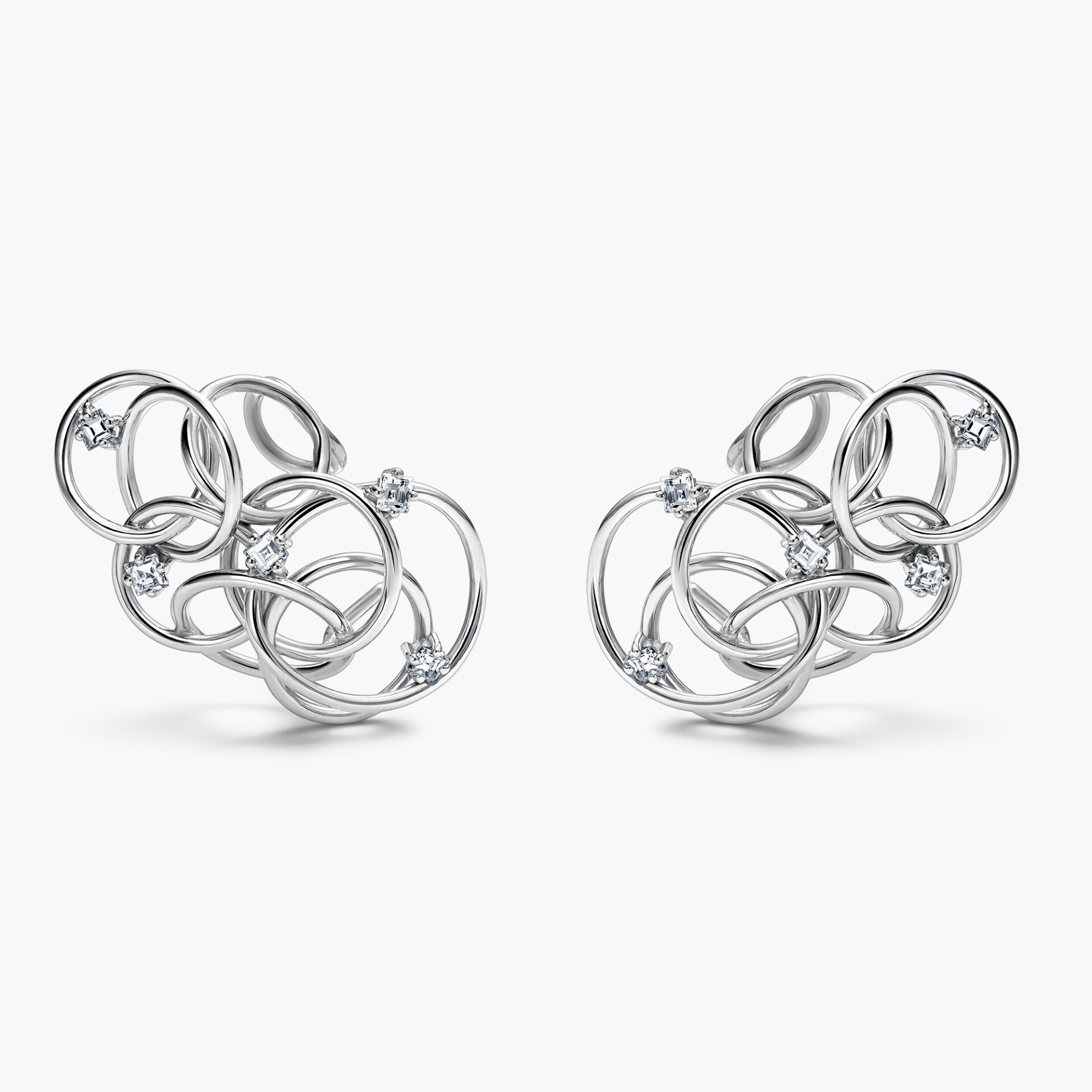 Pendientes realizados en oro blanco de Ley acabado brillo, decorado por diamantes naturales talla carré engastados en garras con 0,4 cts. de peso total aproximado.
